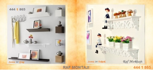 Duvarlarınıza montajı gereken çeşitli rafların, kitaplıkların, süs ve dekoratif rafların montajları talebiniz ve zevkiniz doğrultusunda tecrübeli mobilya montaj ustalarımız yapılır.